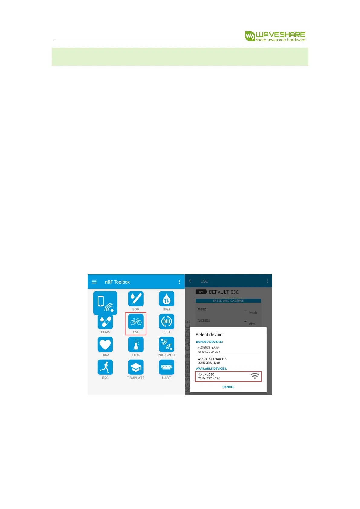 ⚫ Open nRF Toolbox APP, click CSC(Cycling Speed and Cadence)