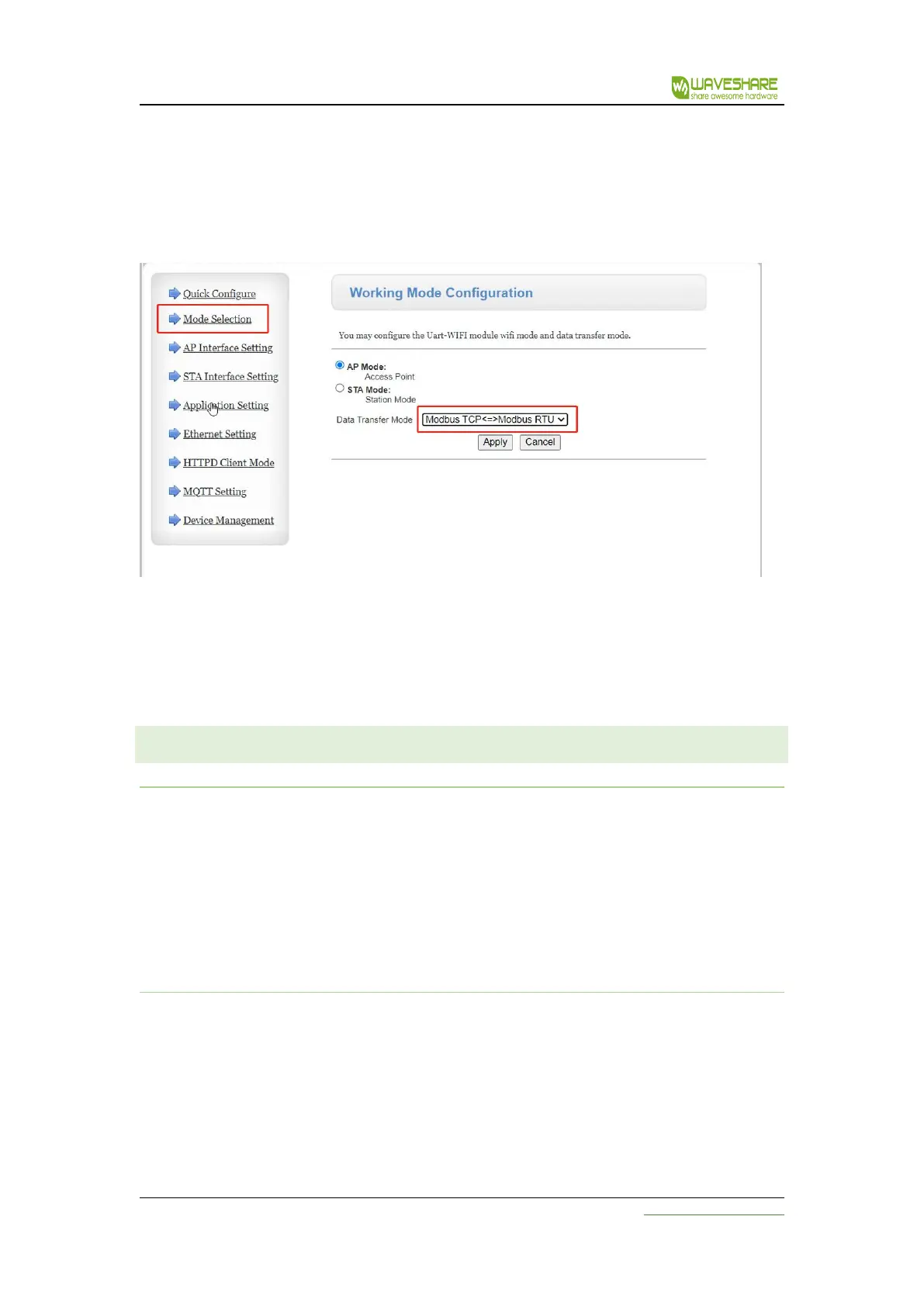 AT+TMODE=modbus