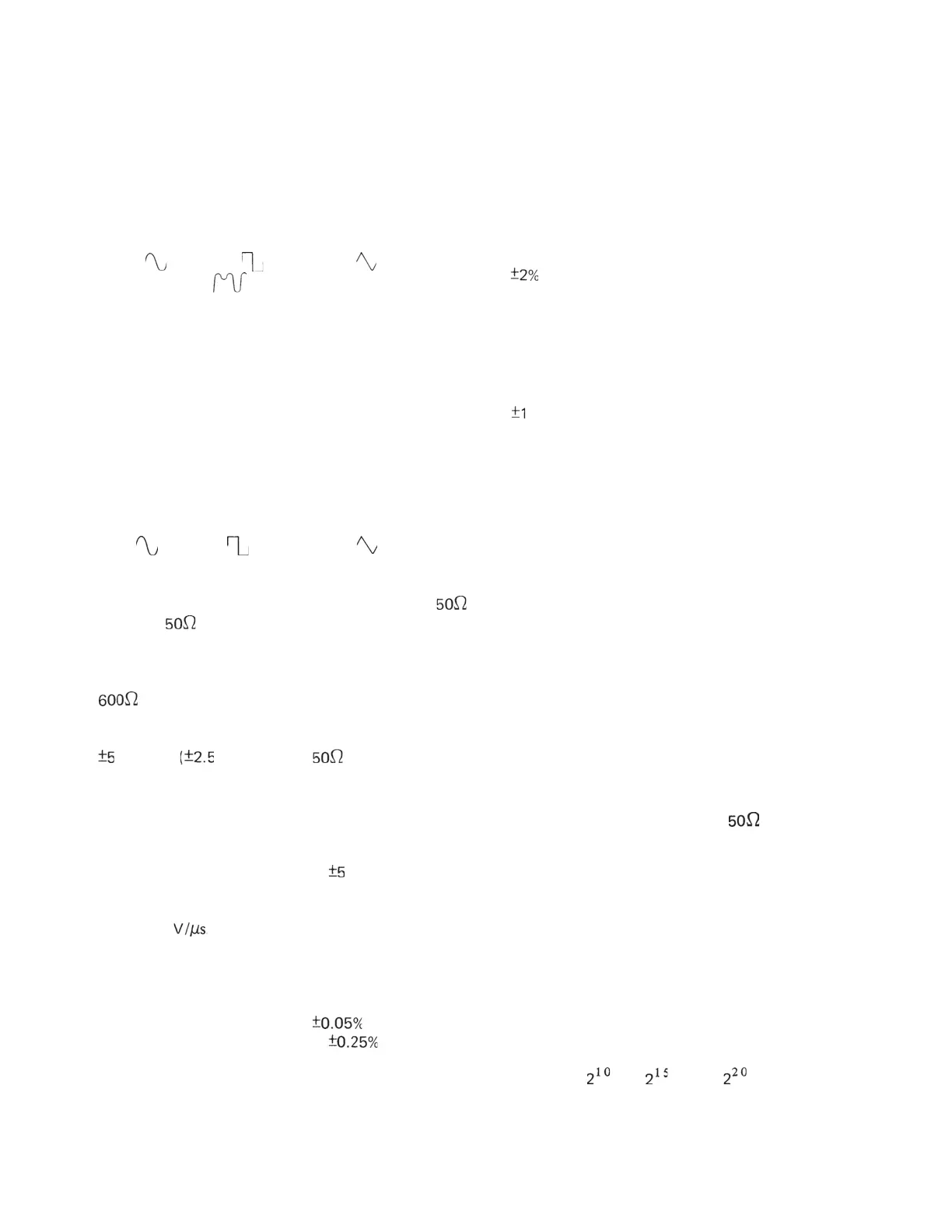 Percentages apply to amplitude, frequency, and dc
