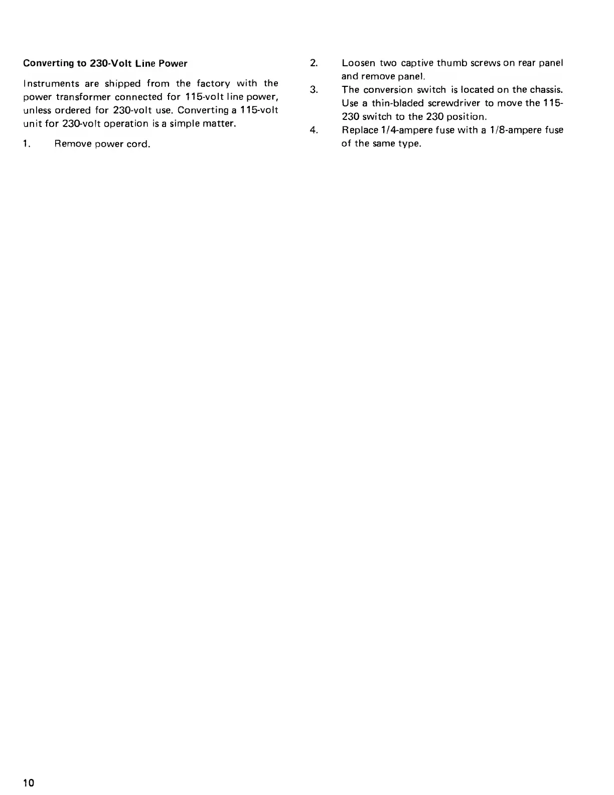 Wavetek 132 - Section 2 Operation - Power Conversion; Converting to 230-Volt Line Power