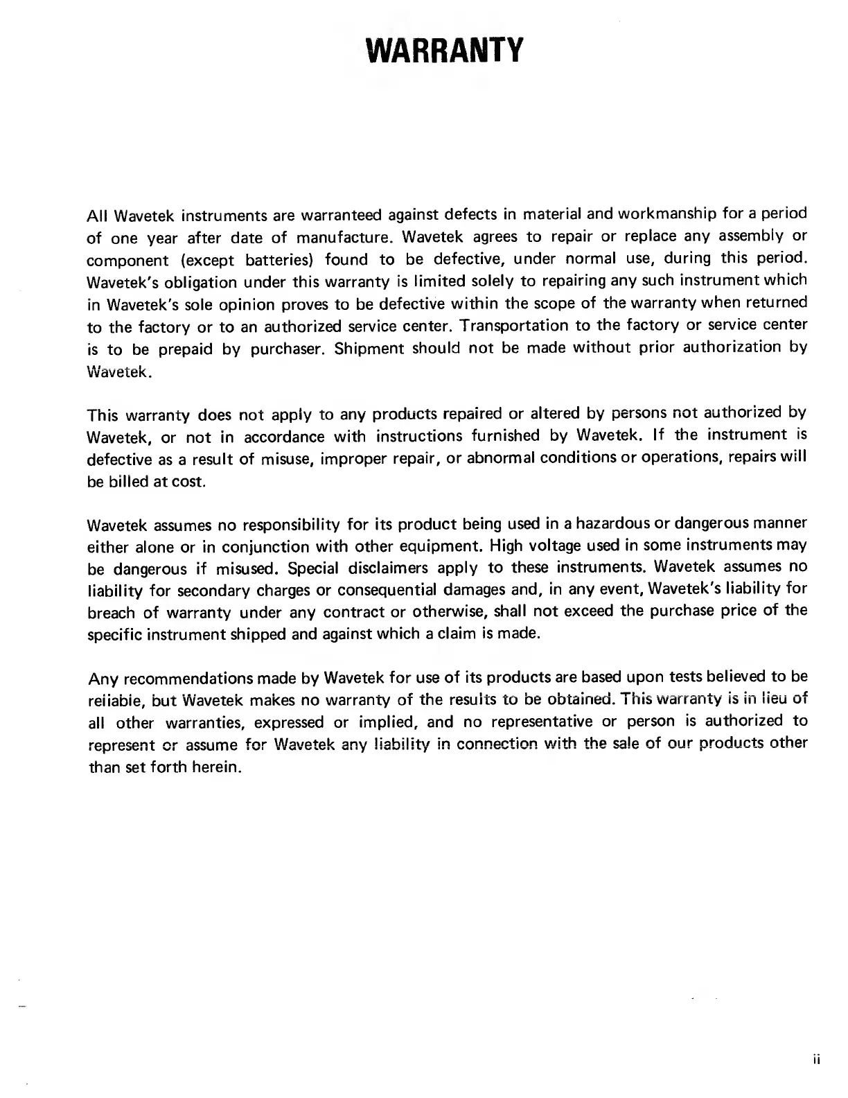 Wavetek 132 - Warranty Information; Warranty Terms