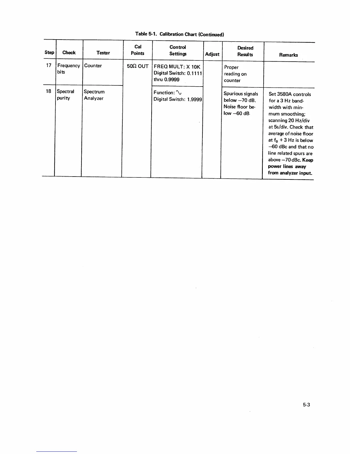 Table 5-1. Calibration Chart (Continued)