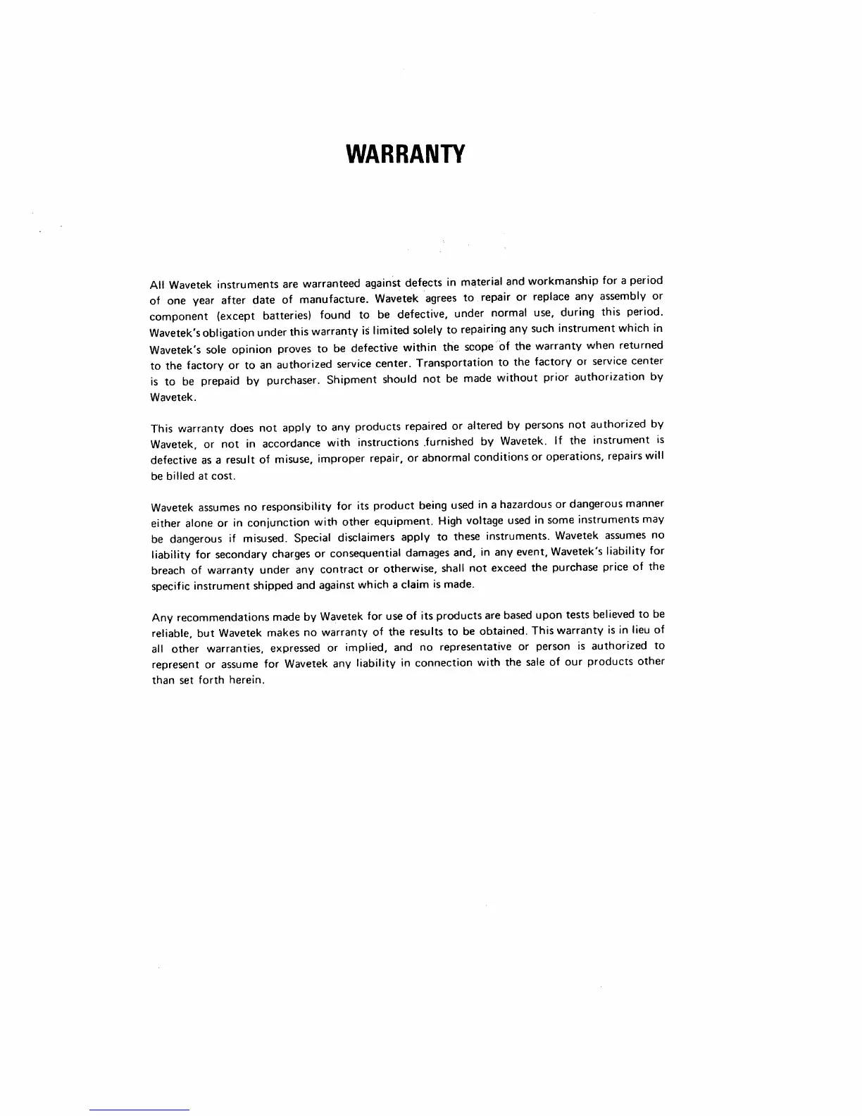 Wavetek's obligation