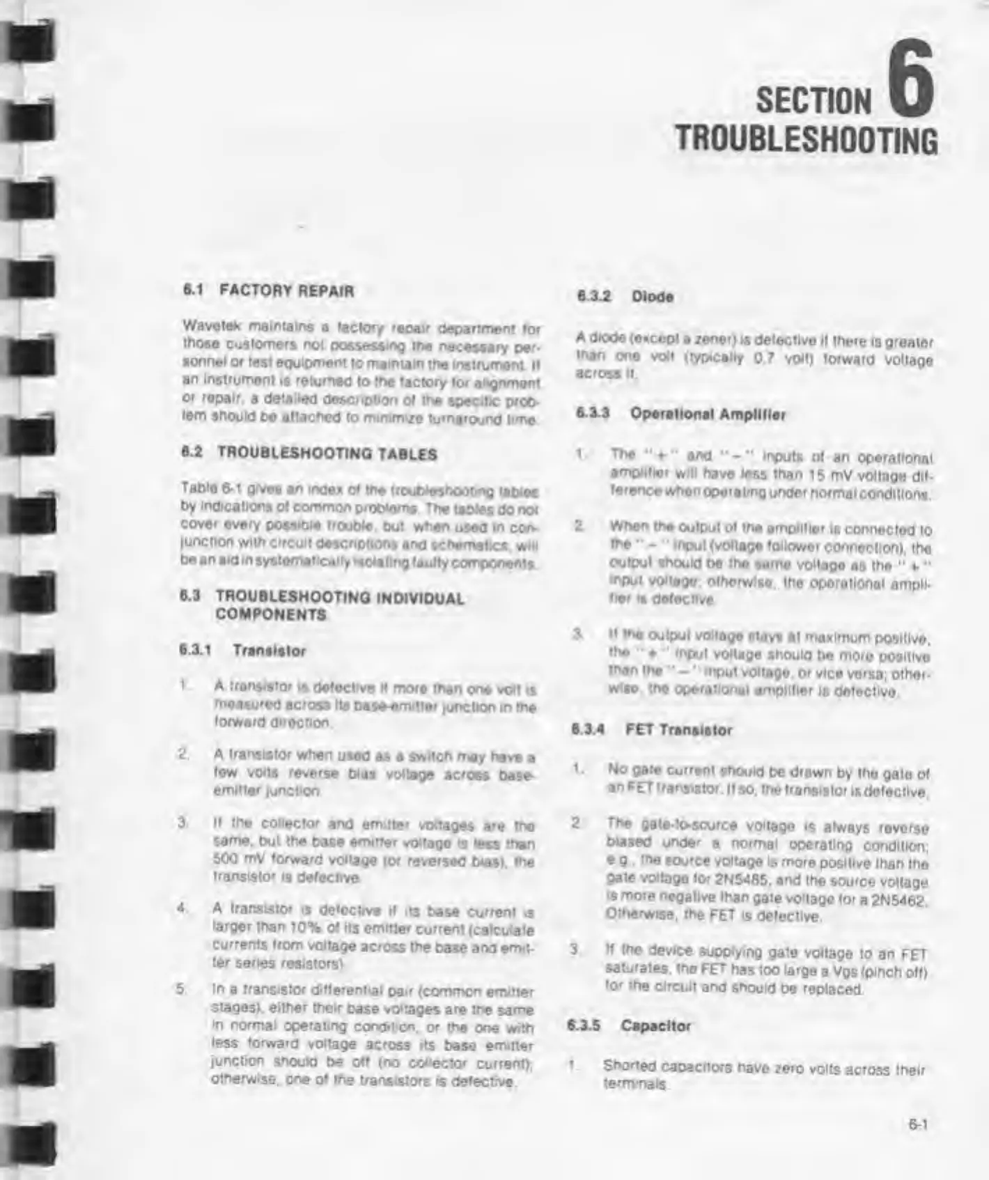 Wavetek 188 - Troubleshooting; Factory Repair; Troubleshooting Tables; Troubleshooting Individual Components