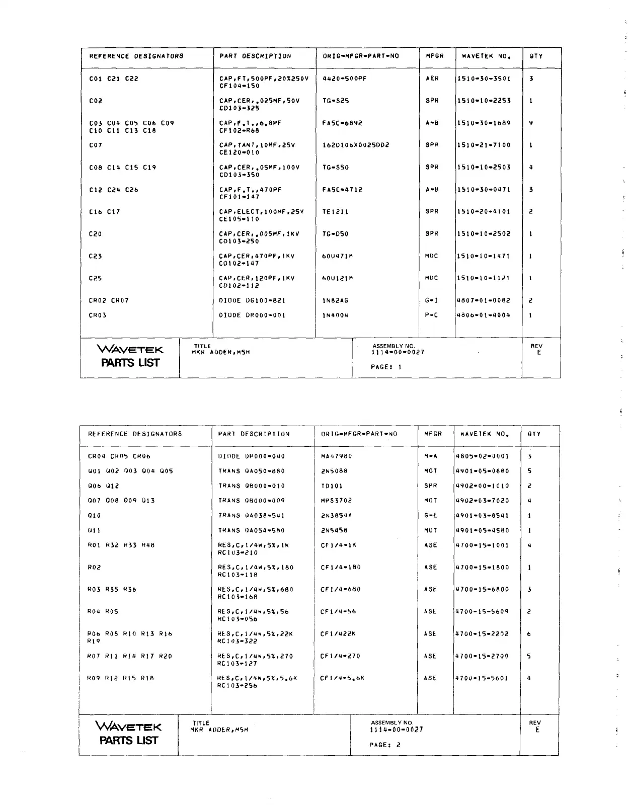 REFERENCE DESIGNATORS PART DESCRIPTION
