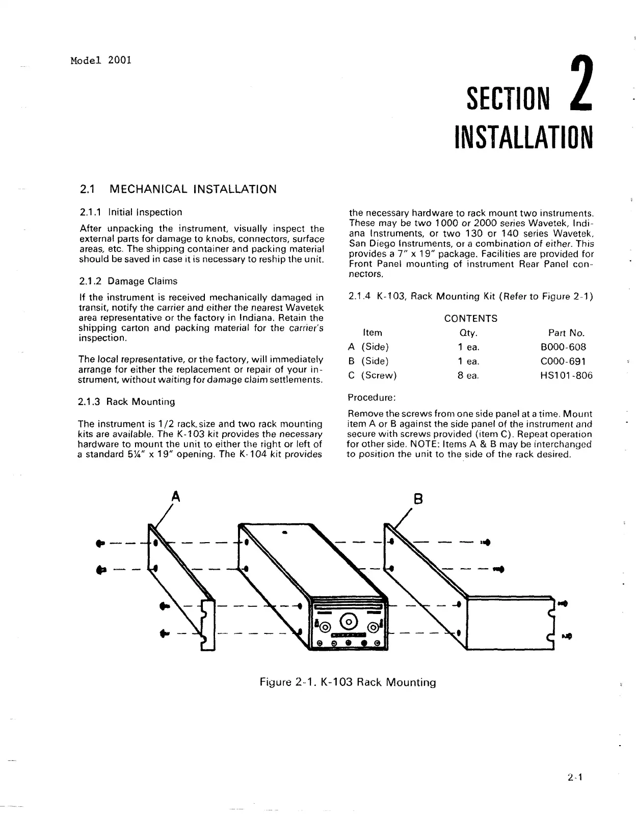 Figure 2-1. K-103 Rack