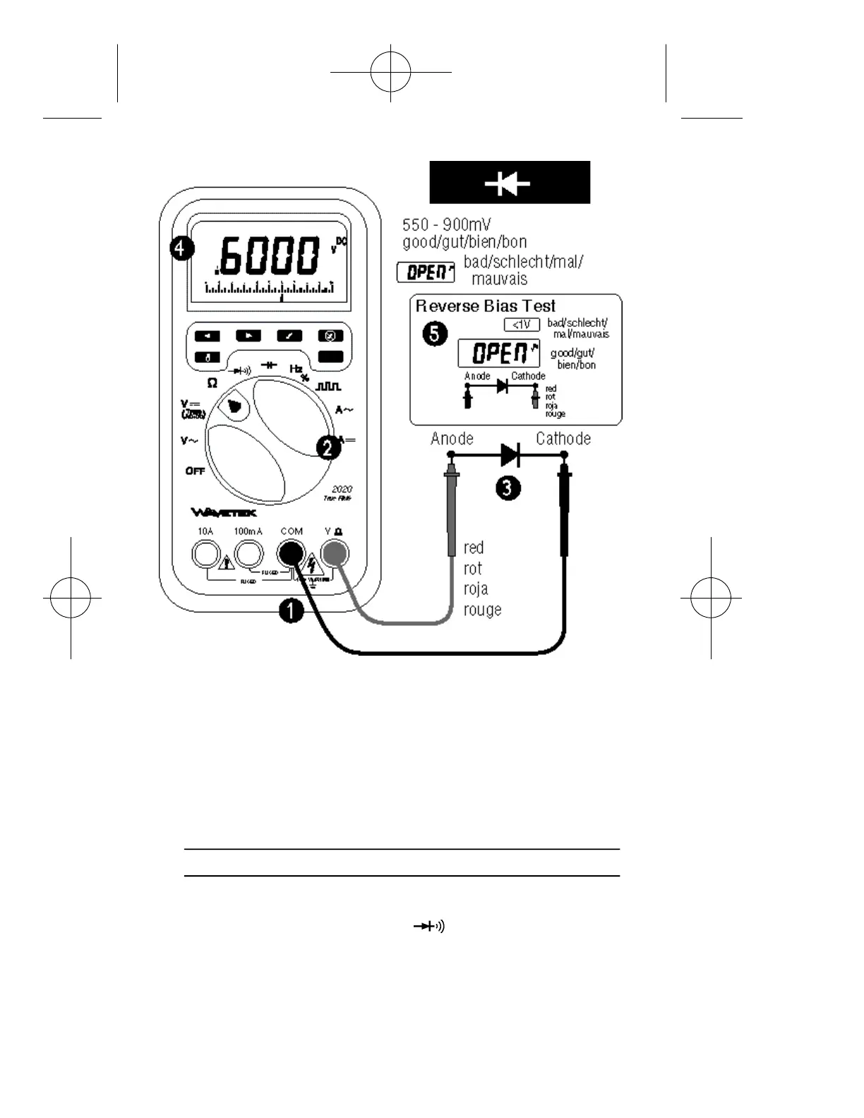 puntas de prueba para comprobar la polarización inversa del diodo. “OPEN”