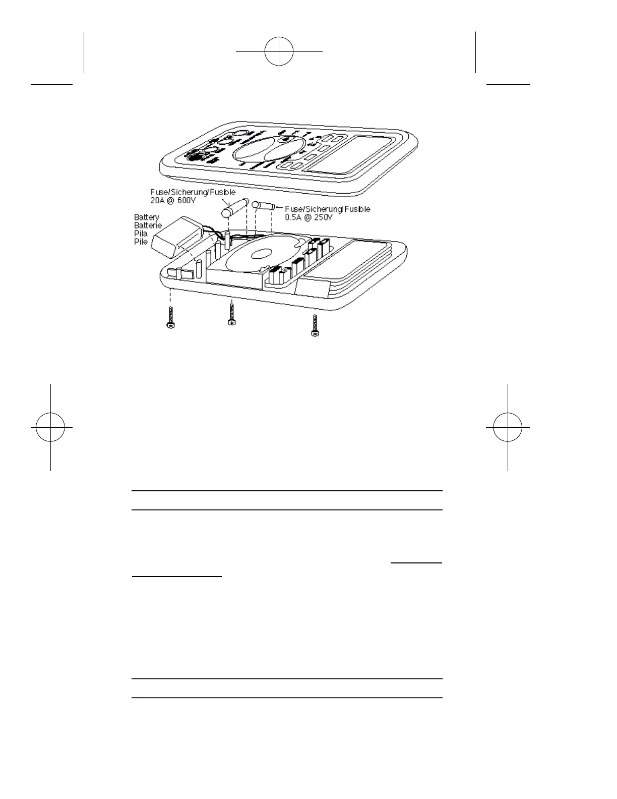 E • Sustitución de la Pila y los Fusibles (vea fig. 7)