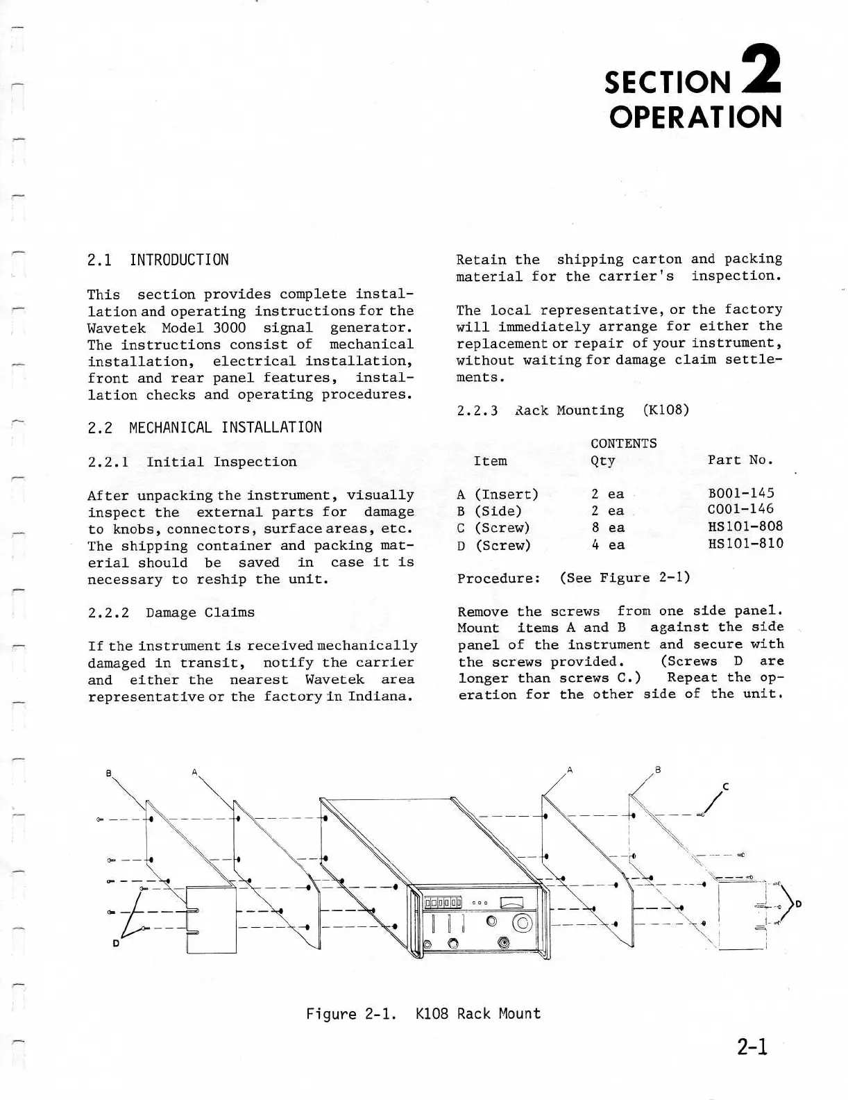 Wavetek 3000 - SECTION 2 OPERATION; Introduction to Operation; Mechanical Installation