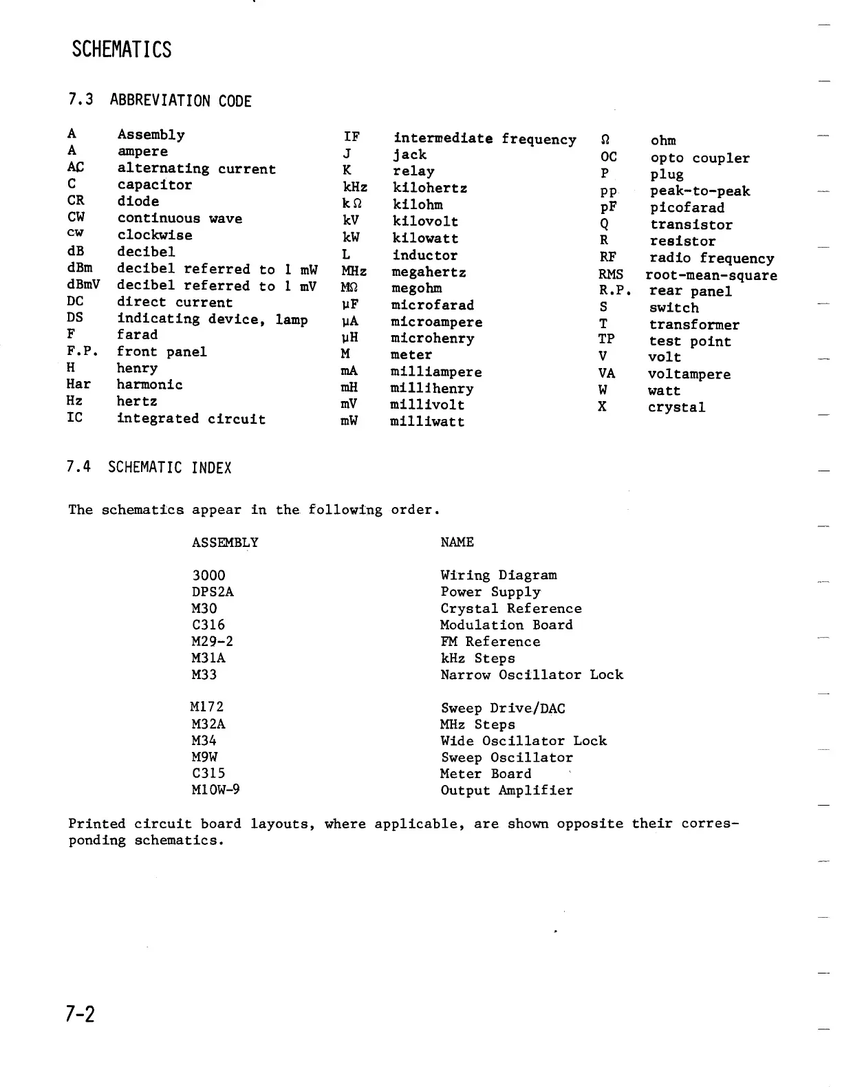 Wavetek 3000 - Abbreviation Code; Schematic Index
