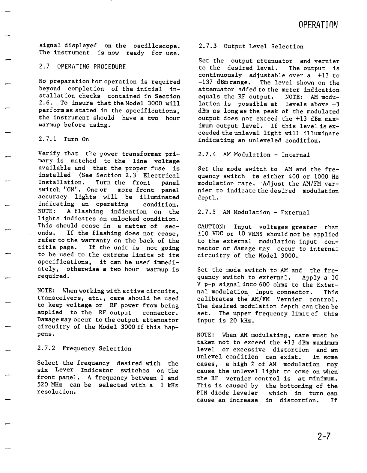 Wavetek 3000 - Operating Procedure; AM Modulation Procedures