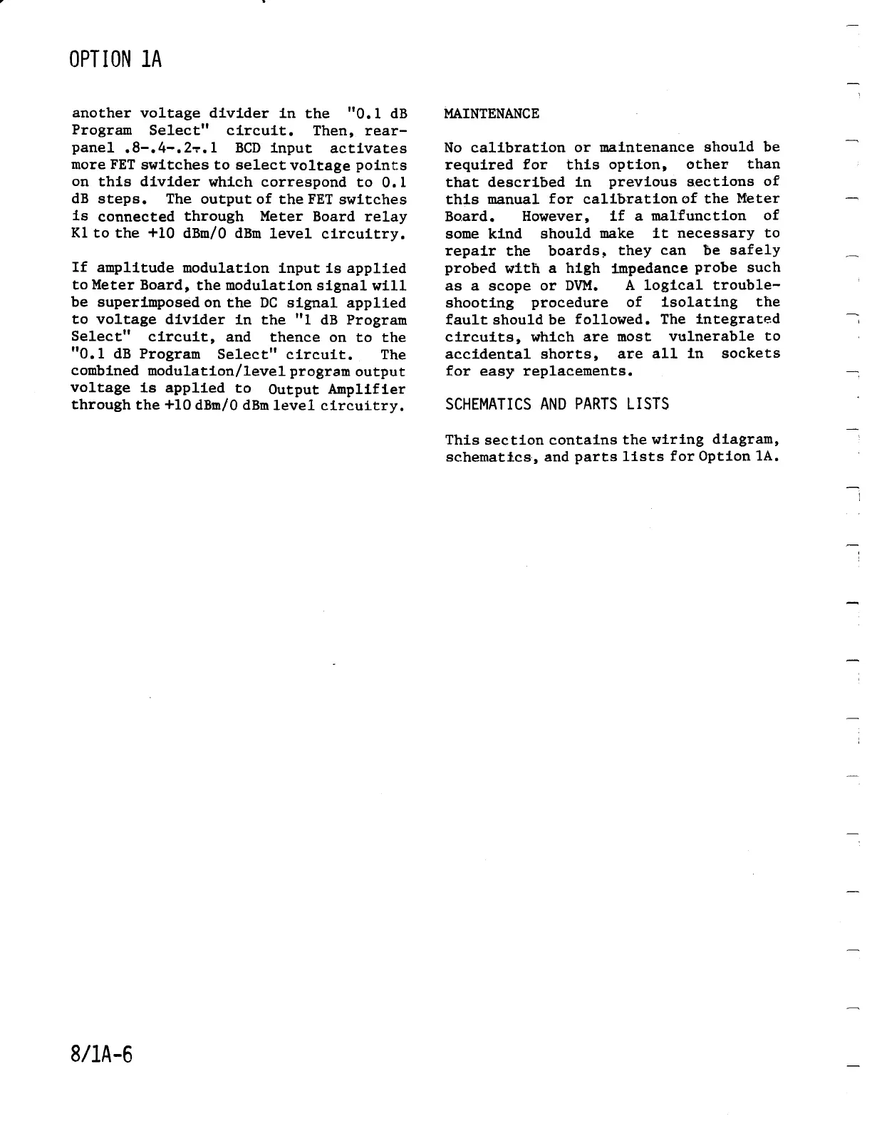 Wavetek 3000 - Option 1 A Maintenance; Option 1 A Schematics and Parts Lists