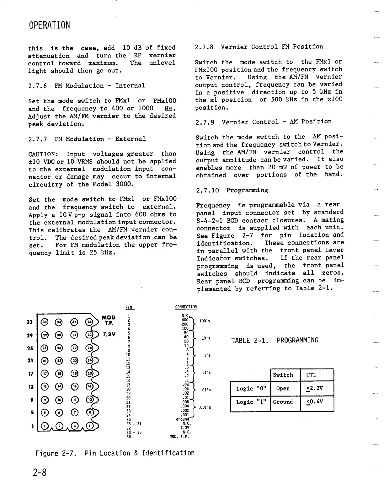 Wavetek 3000 - FM Modulation Procedures; Vernier Control Operations; Programming Interface