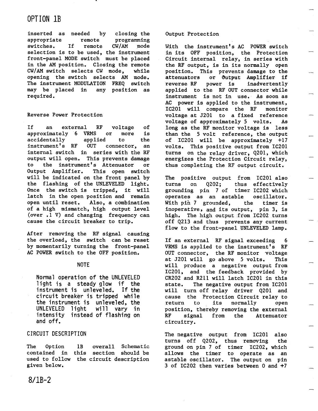 Wavetek 3000 - Output Protection; Option 1 B Circuit Description