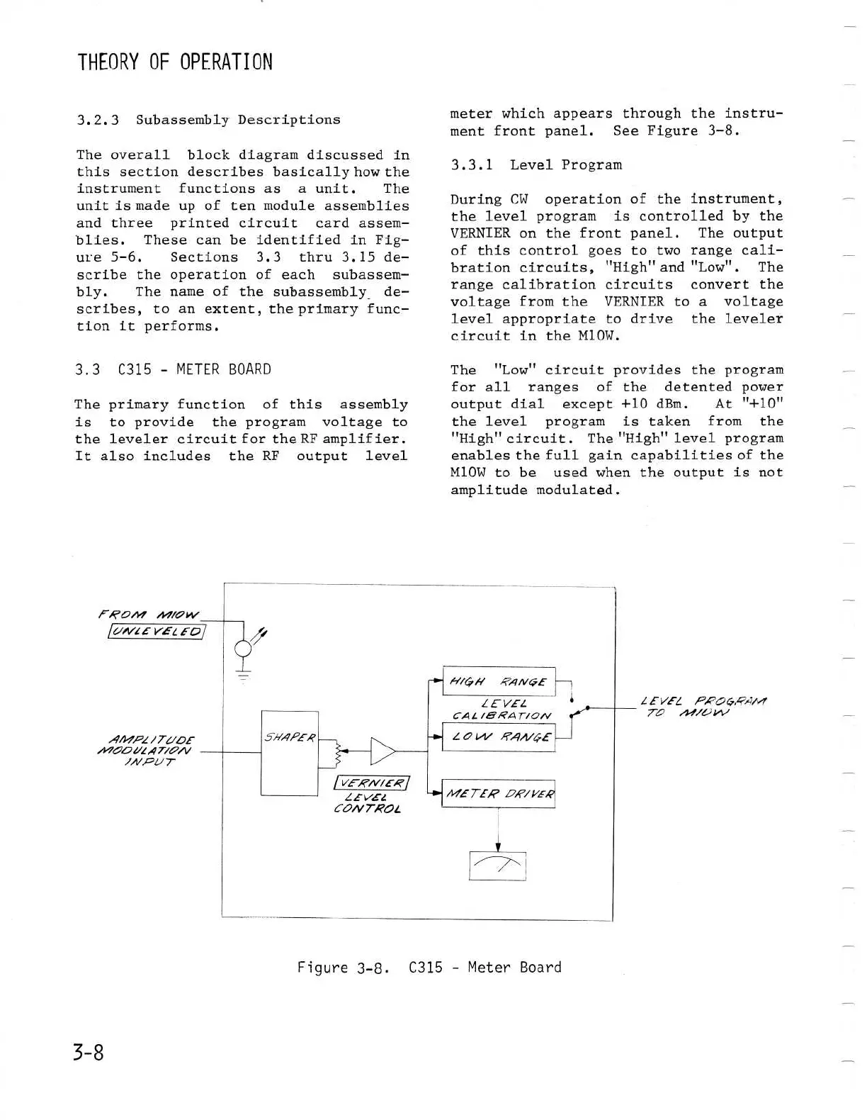 Wavetek 3000 - Subassembly Descriptions; C315 - Meter Board; Level Program Control