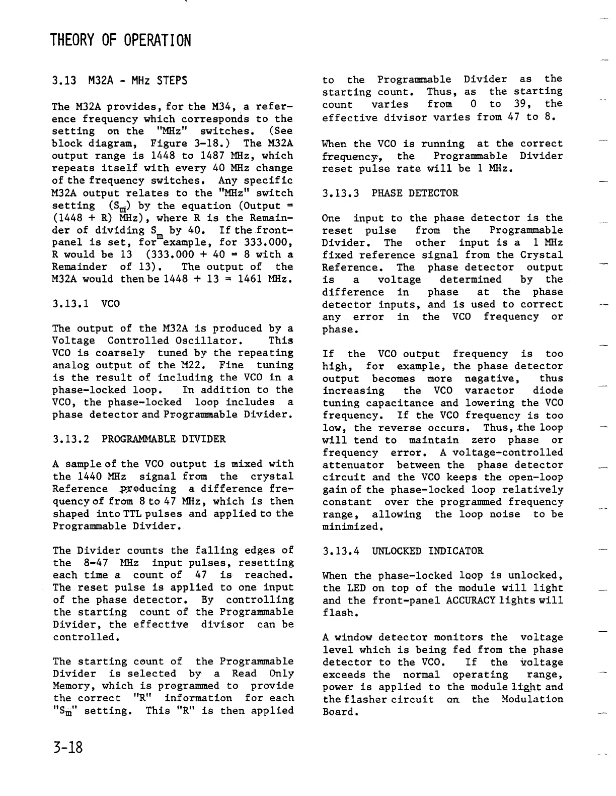 Wavetek 3000 - M32 A - MHz Steps; Programmable Divider Function; Phase Detector Operation; Unlocked Indicator Logic
