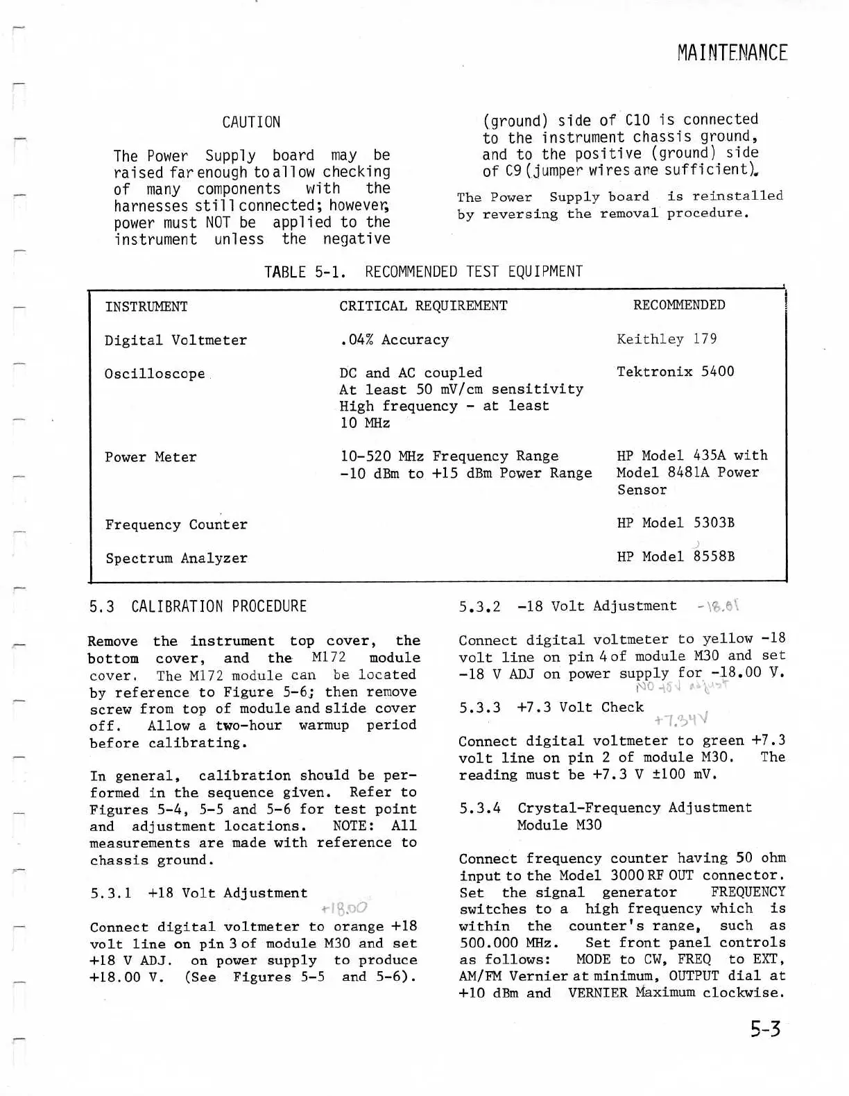 Wavetek 3000 - Calibration Procedure; +18 Volt Adjustment; -18 Volt Adjustment; +7.3 Volt Check