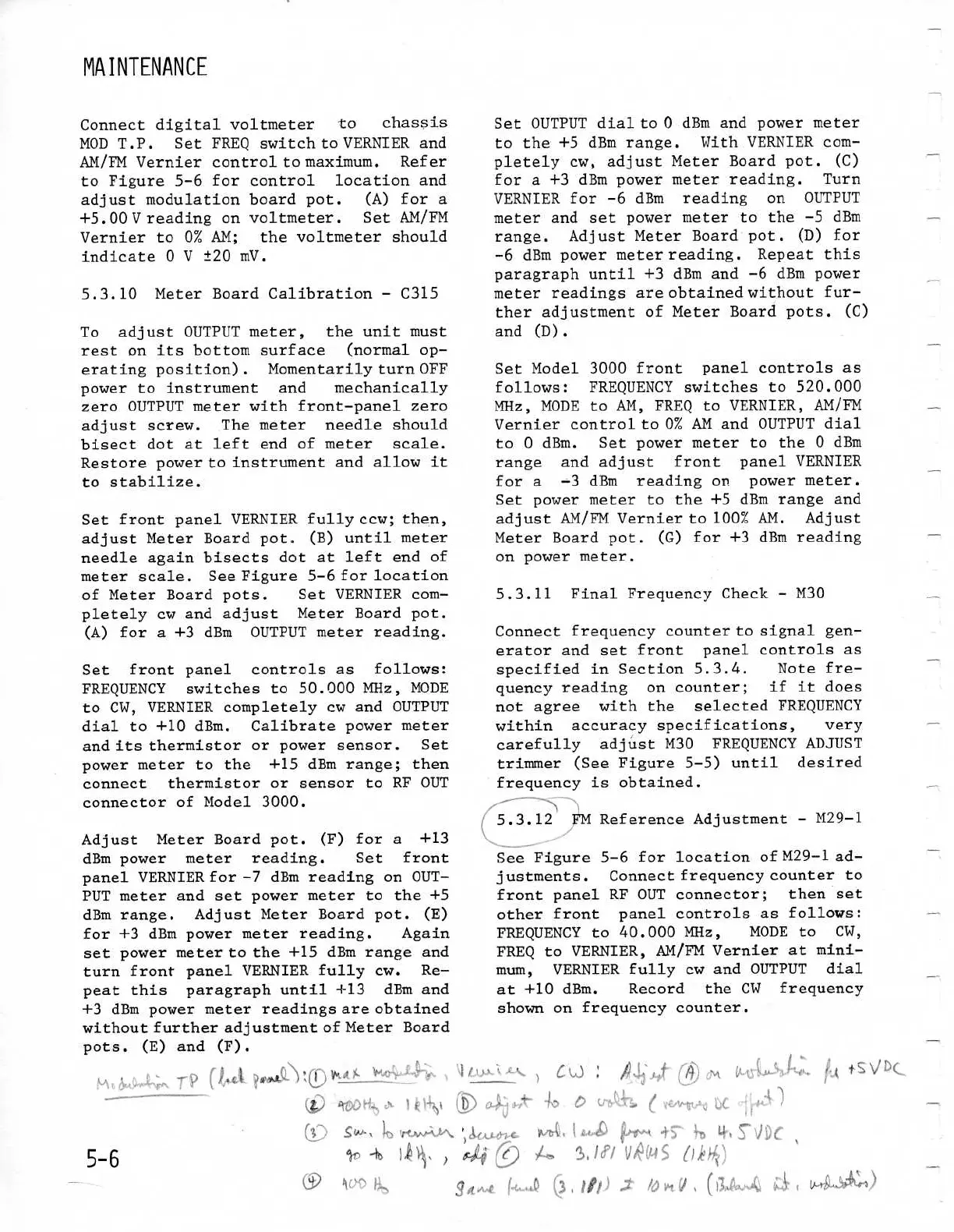 Wavetek 3000 - Meter Board Calibration C315; Final Frequency Check - M30; FM Reference Adjustment - M29-1