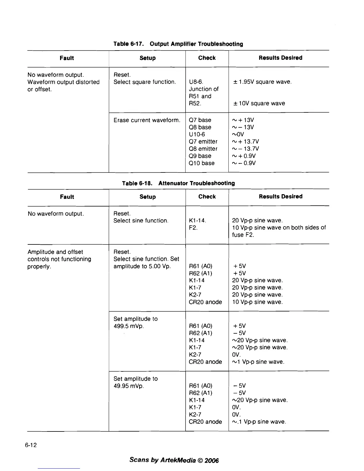 Wavetek 75 - Output Amplifier Troubleshooting; Attenuator Troubleshooting