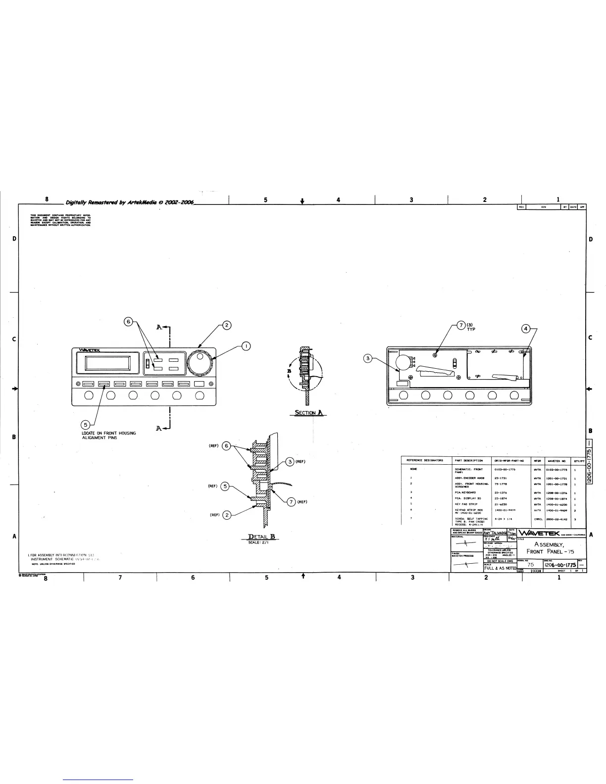 Wavetek 75 - Front Panel - 75, Assembly Diagram