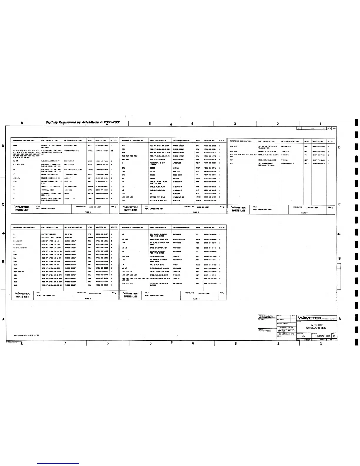 Wavetek 75 - UPROC;ARB MEM Parts List