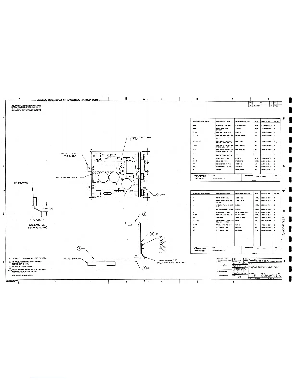 Wavetek 75 - PCA, Power Supply Diagram