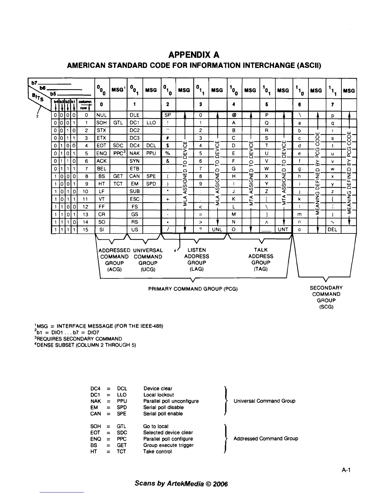 Wavetek 75 - APPENDIX A; AMERICAN STANDARD CODE FOR INFORMATION INTERCHANGE (ASCII)