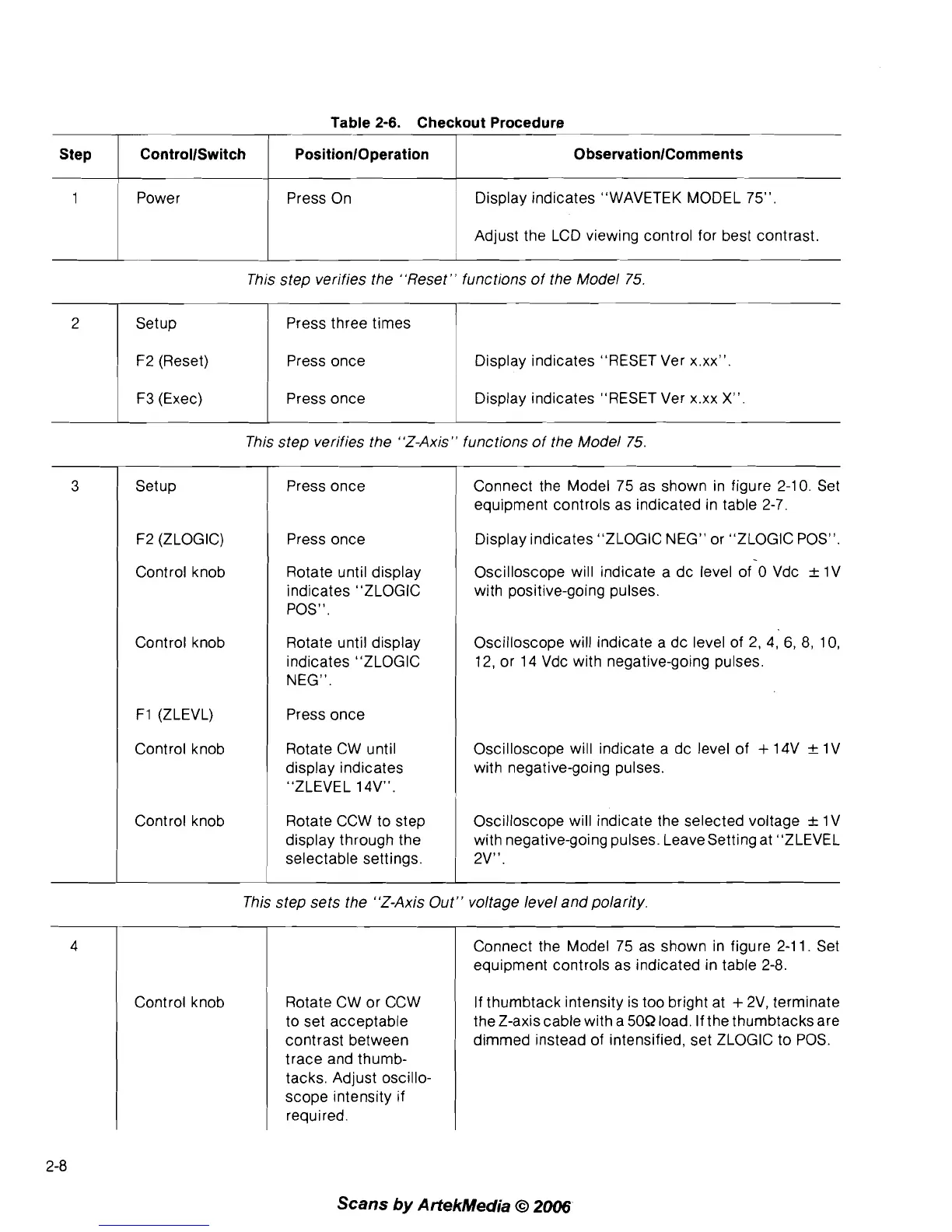 This step verifies the "Z-Axis" functions of the Model 75.