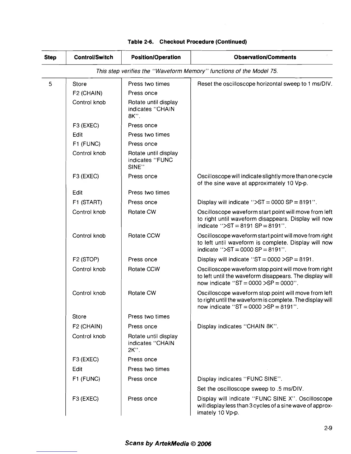 This step verifies the "Waveform Memory'' functions of the Model 75.
