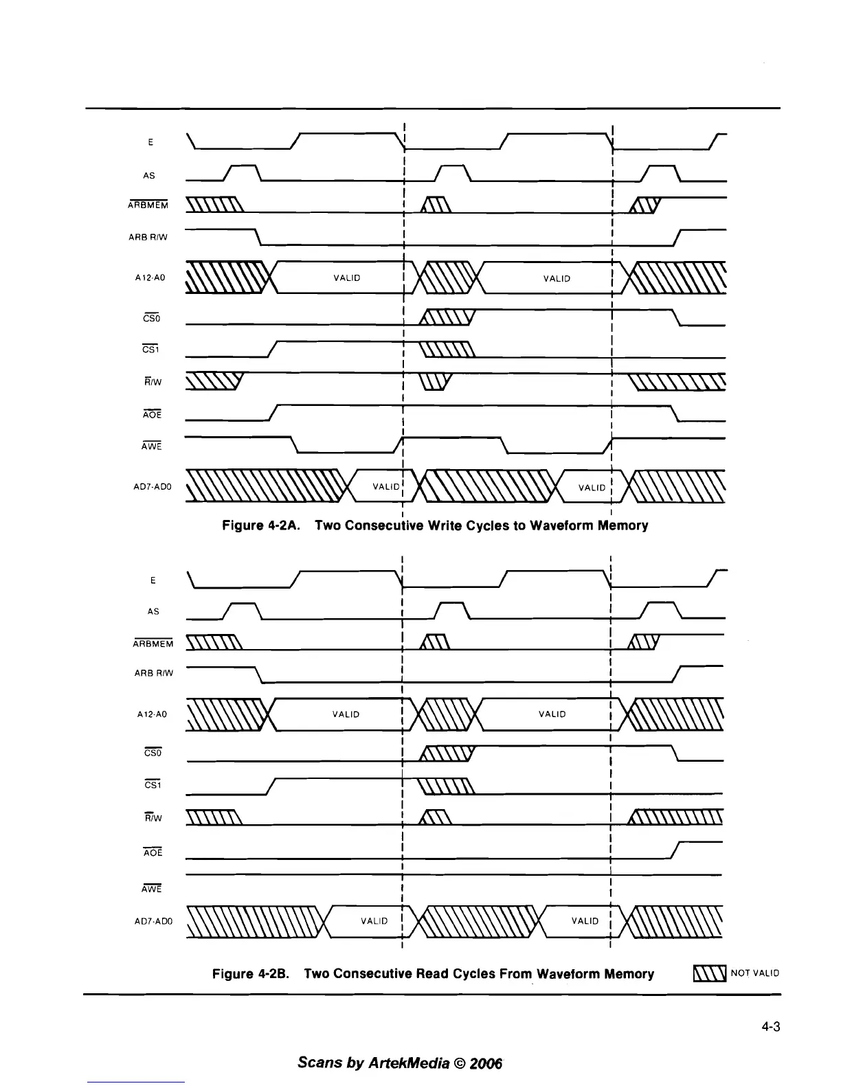 Wavetek 75 - Two Consecutive Write Cycles to Waveform Memory; Two Consecutive Read Cycles from Waveform Memory