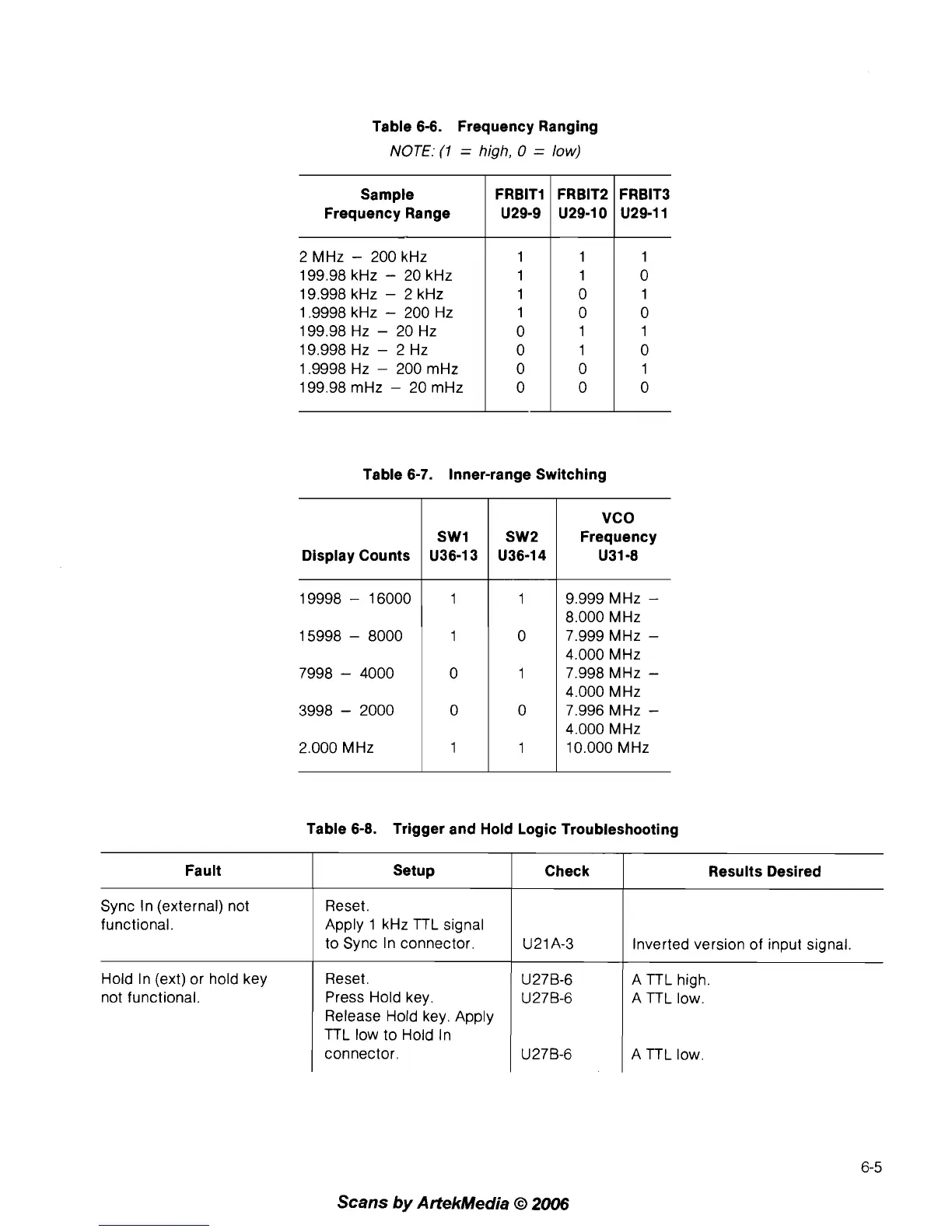 Wavetek 75 - Inner-Range Switching; Trigger and Hold Logic Troubleshooting