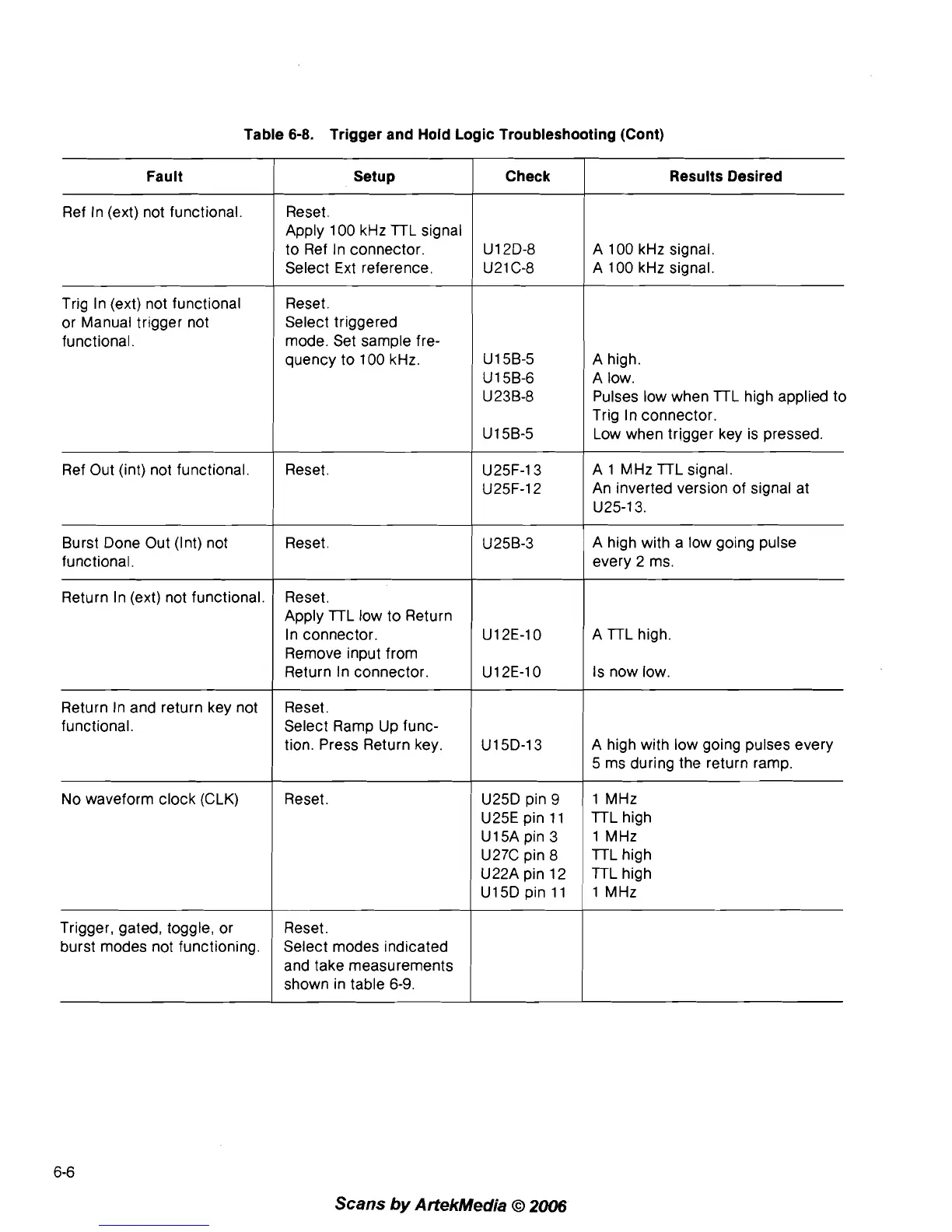Table 6-8. Trigger and Hold Logic Troubleshooting (Cont)