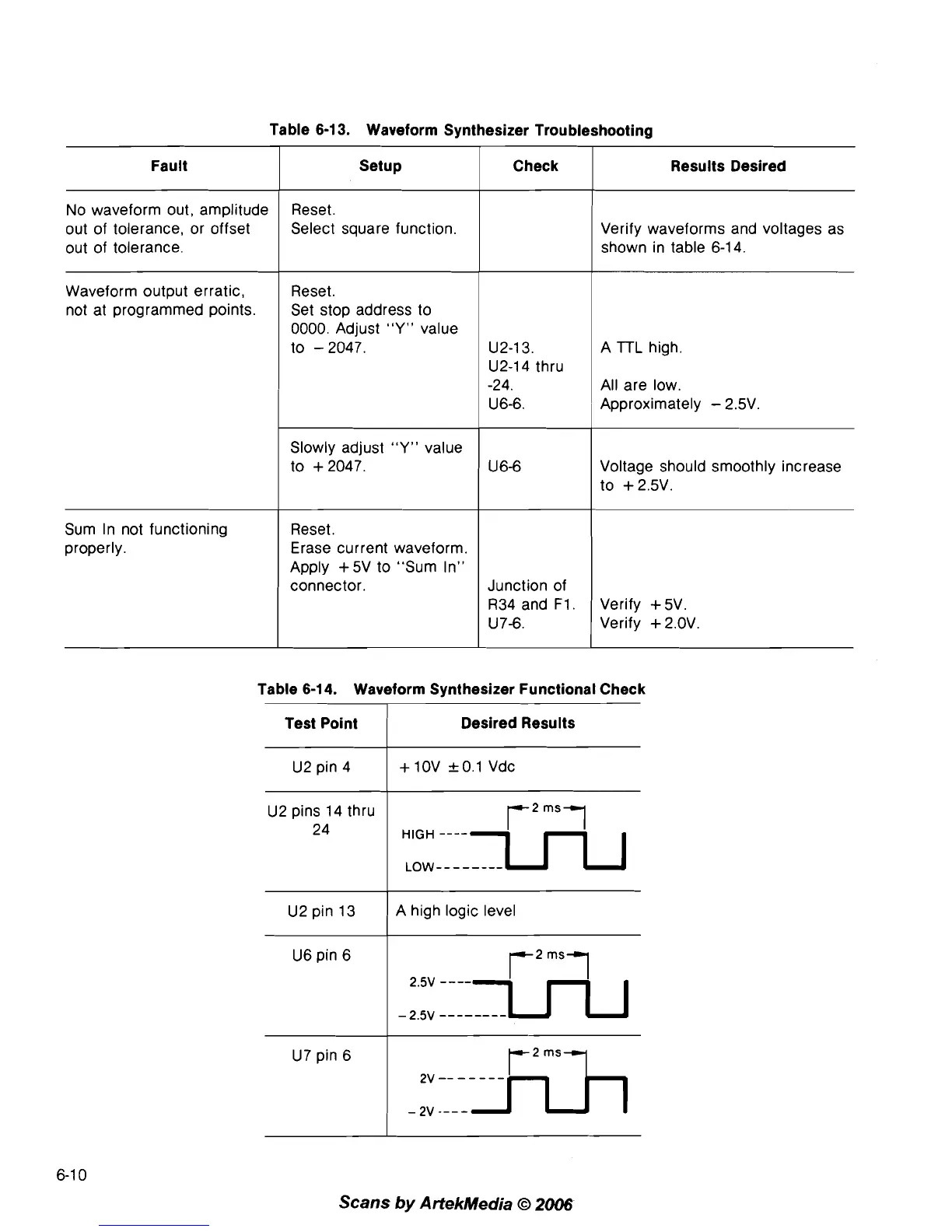Table 6-14. Waveform Synthesizer Functional Check