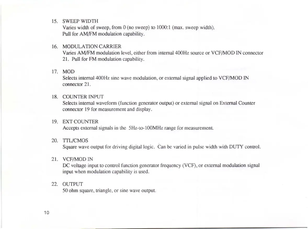 internai 400Hz sine wave modulation, or extemal signal applied to VCF/MOD IN
