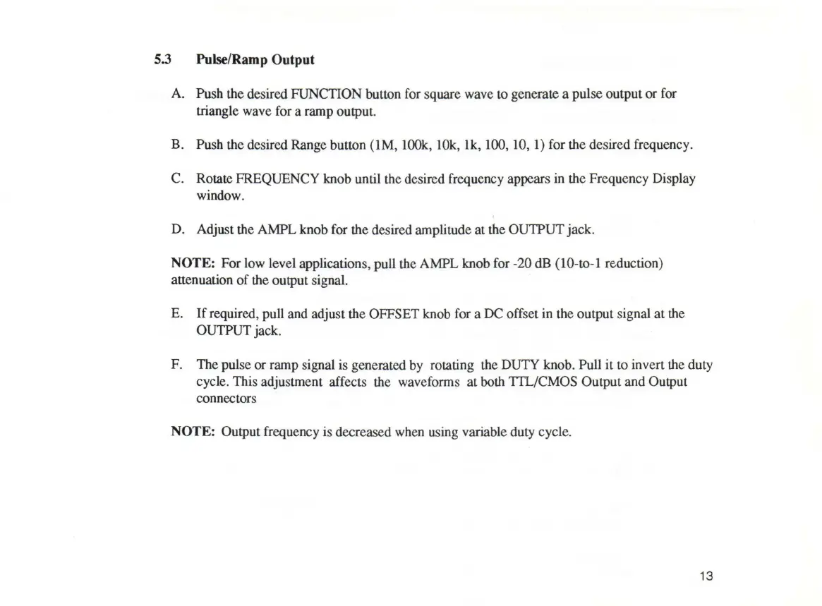 A. Push the desired FUNCTION button for square wave to generate a pulse output or for