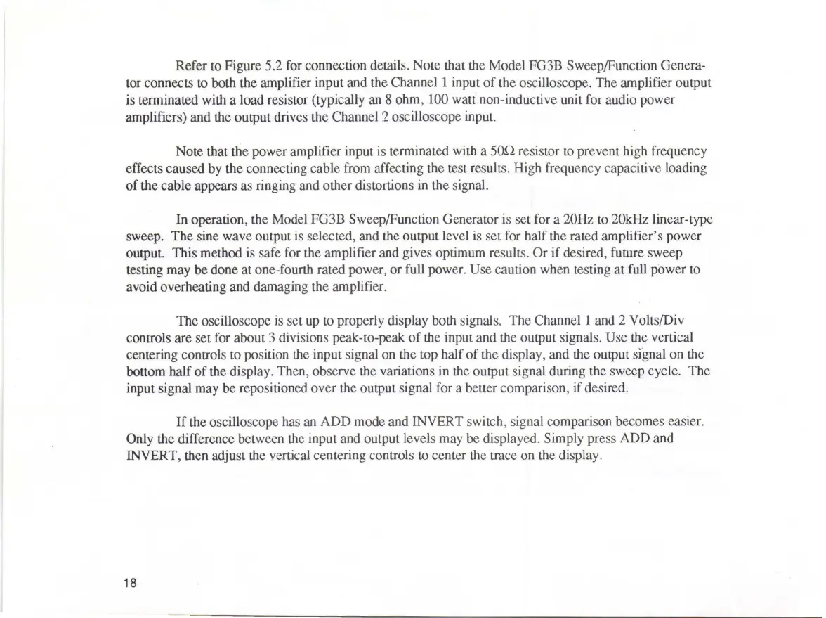 Refer to Figure 5.2 for connection details. Note that the Mode! FG3B Sweep/Function Genera-
