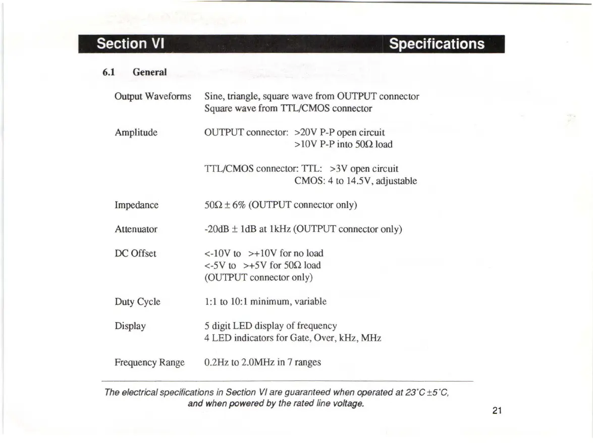 Output Waveforms Sine, triangle, square wave from OUTPUT connec tor