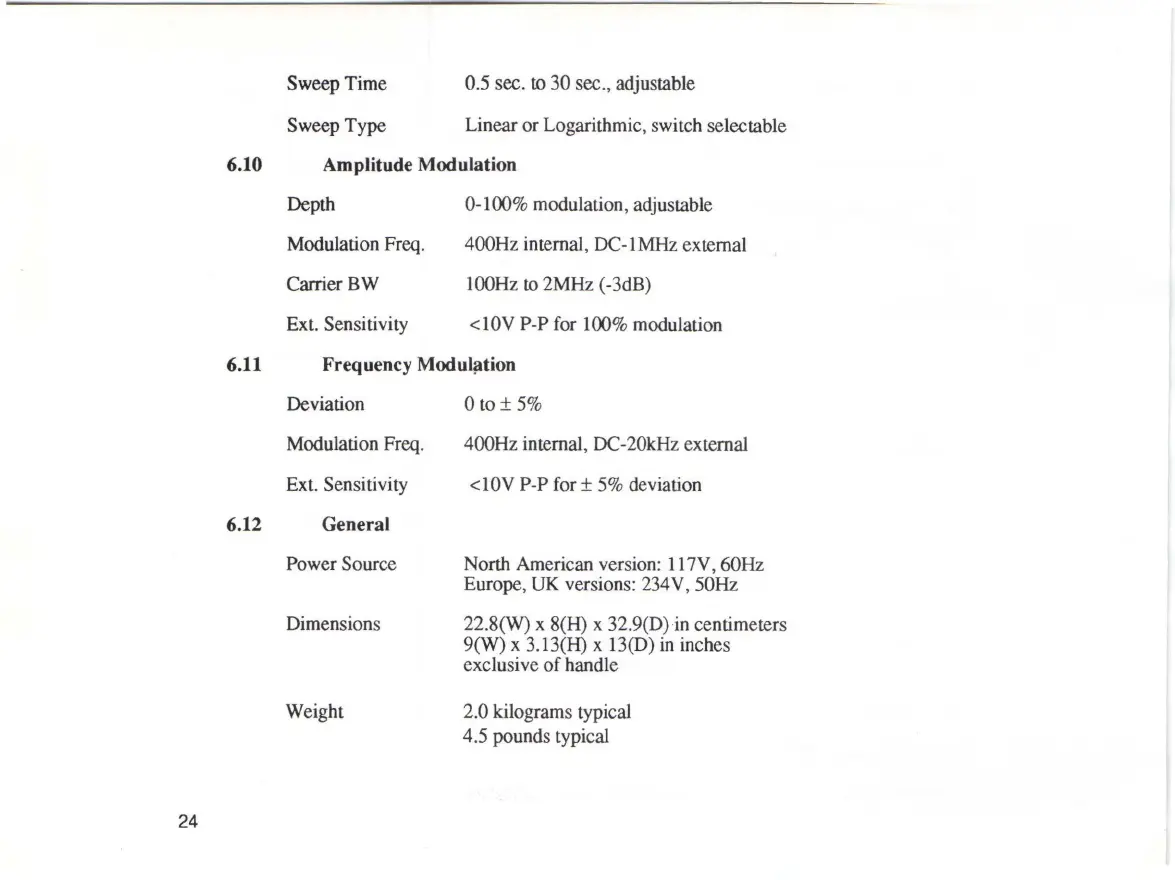 Sweep Type Linear or Logarithmic, switch selectable