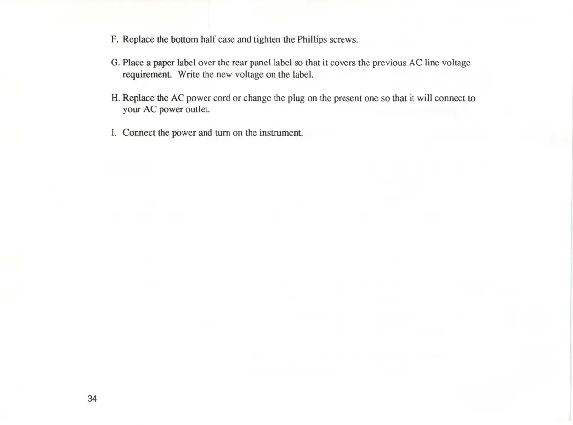 G. Place a paper label over the rear panel label so that it covers the previous AC line voltage