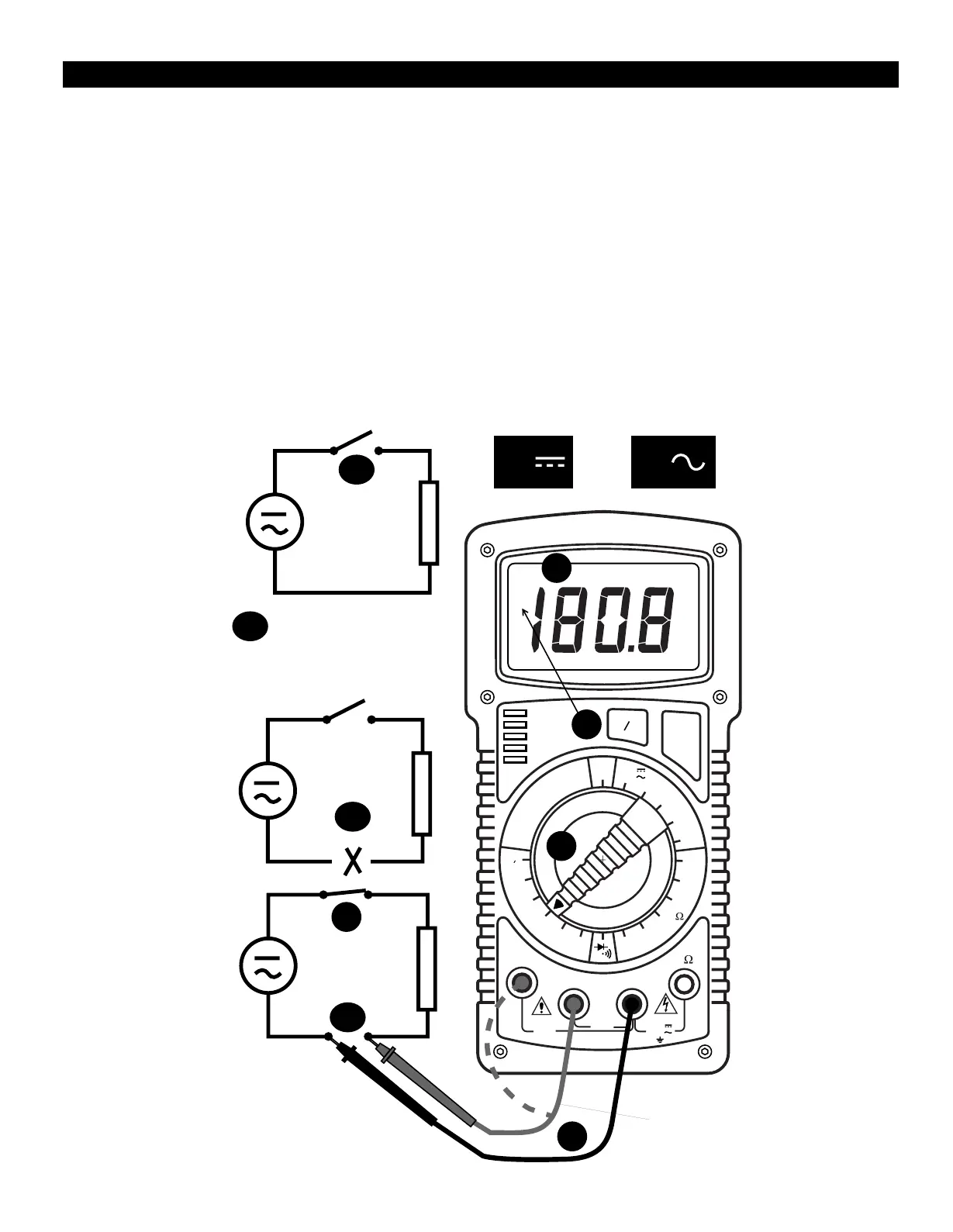 1000V). Securely connect test leads in series with the load. ➎ Turn on power to circuit being tested. ➏ Read