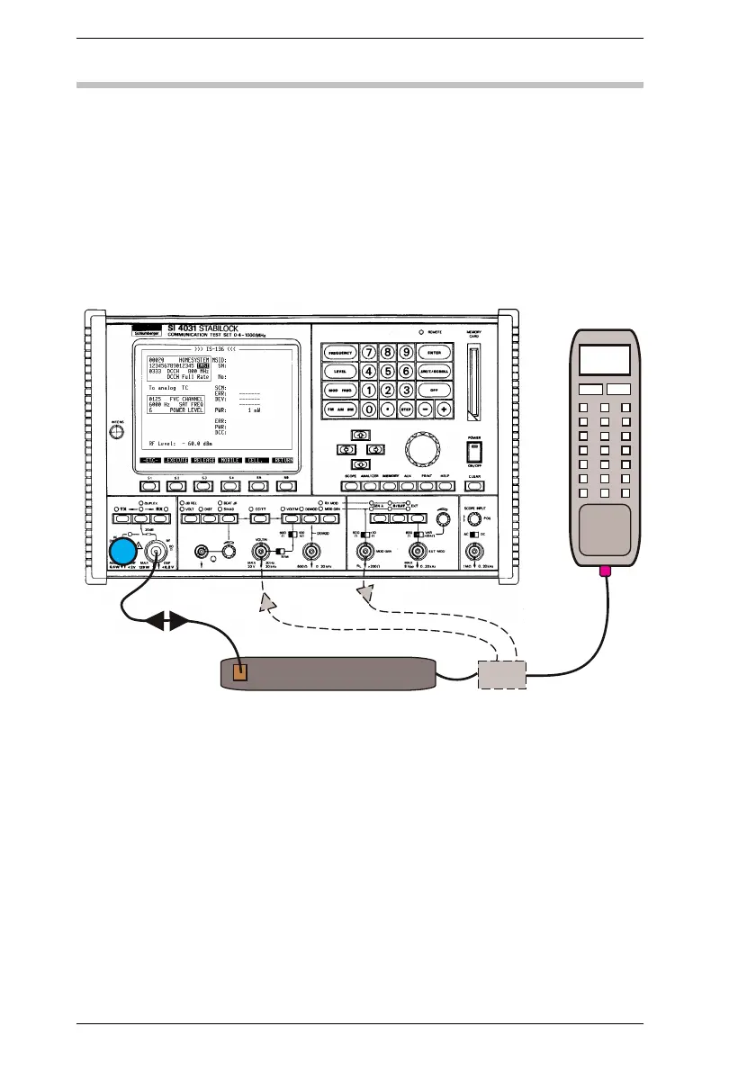 Fig. 10.4: Test setup with IS-136 carphone (handset + transceiver). The test adapter is not