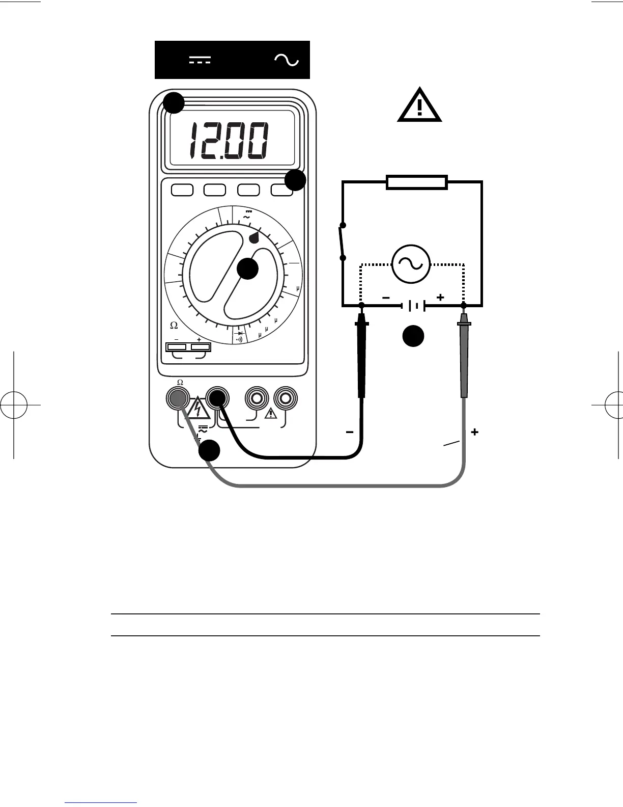 Ponga el selector de Función/Escala en la posición DCV o ACV deseada.