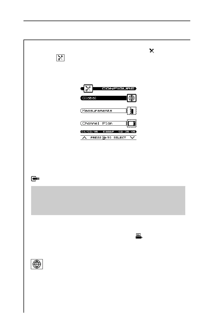 MEASUREMENTS, and CHANNEL PLAN. Use the up and