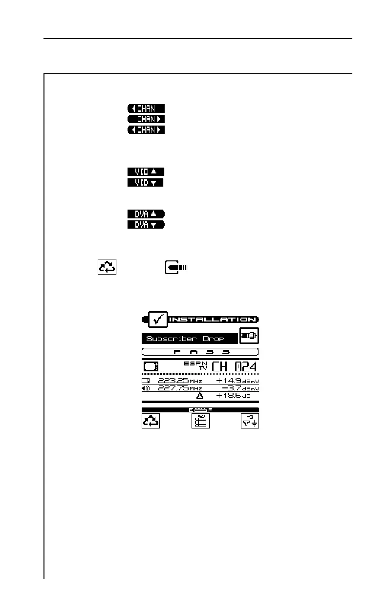 along with the DVA for the selected channel. Use the up or down