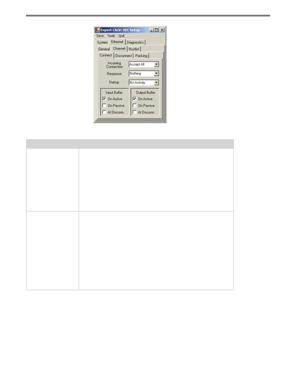 Allows you to configure how the device reacts to incoming connections