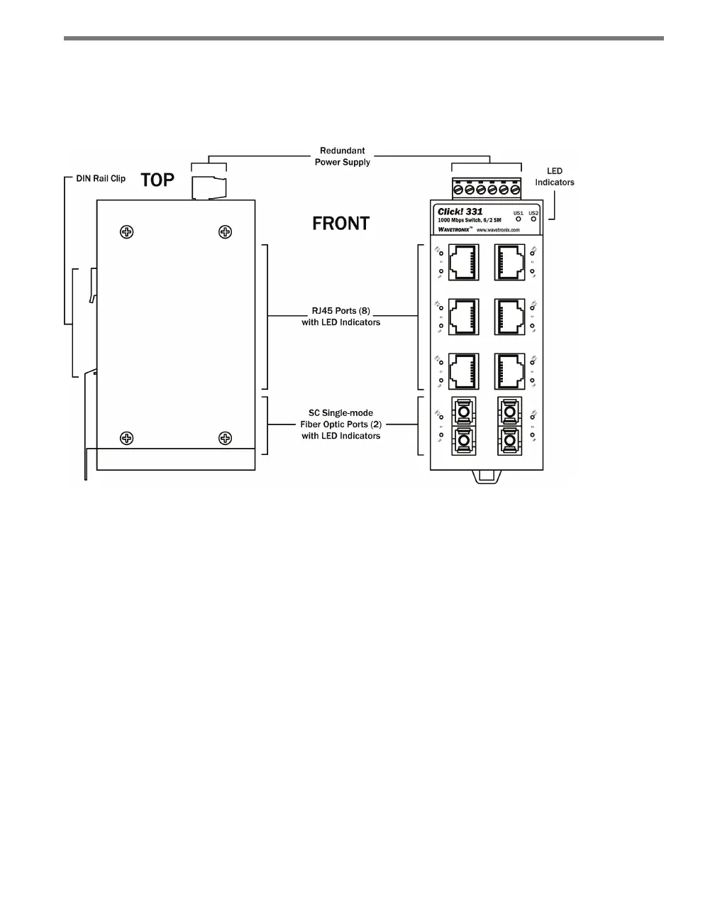 Click 330 – Unmanaged switch with eight RJ-45 ports.