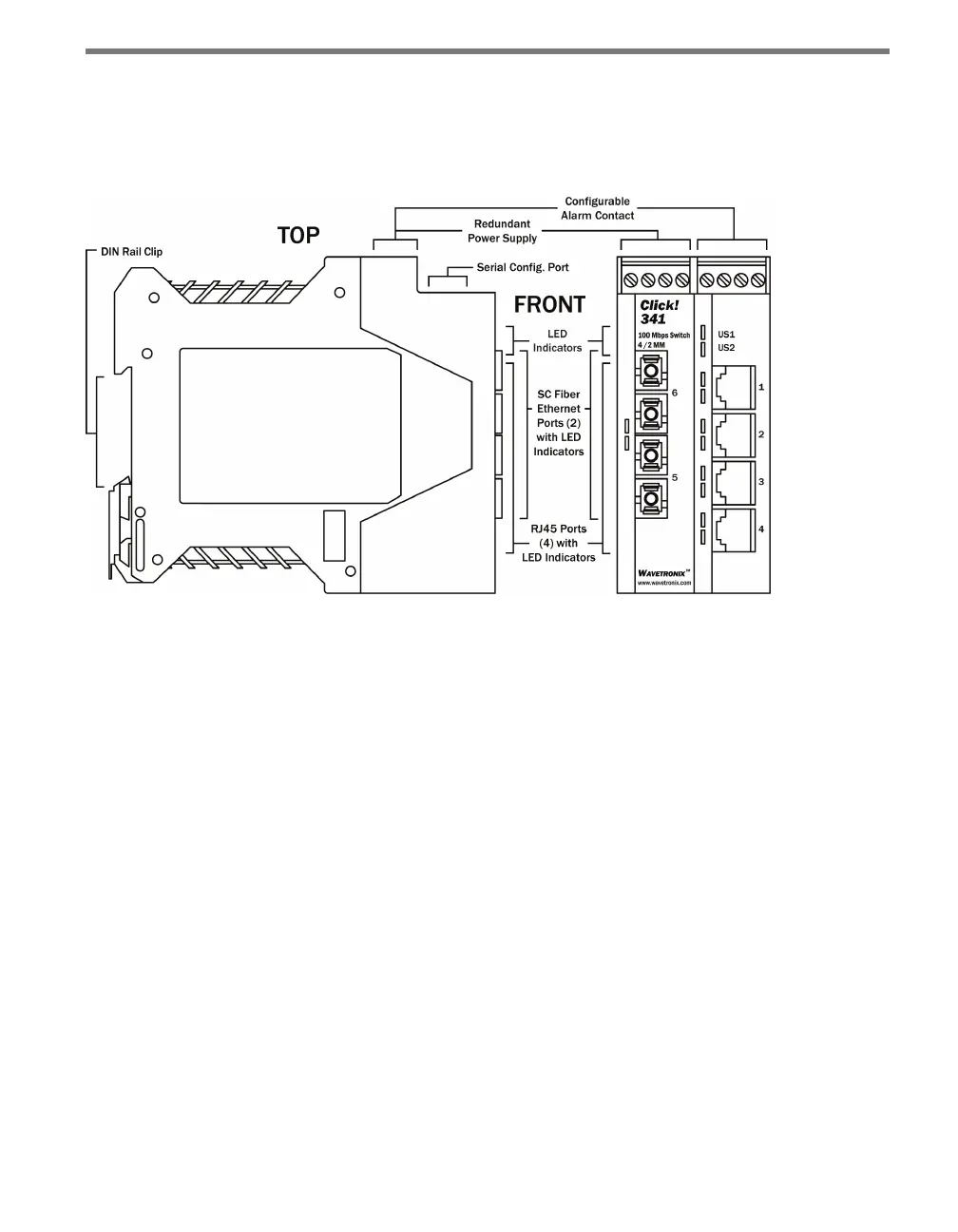Click 341 – Managed switch with four RJ-45 ports and two multimode SC ports.
