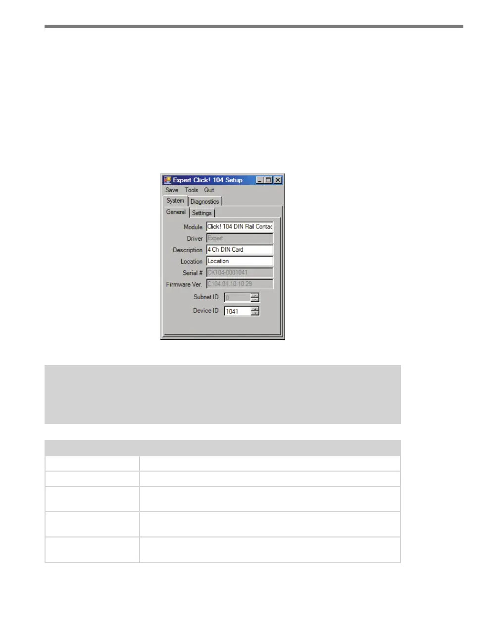e Expert driver contains two tabs, System and Diagnostics; the System tab is then sub-