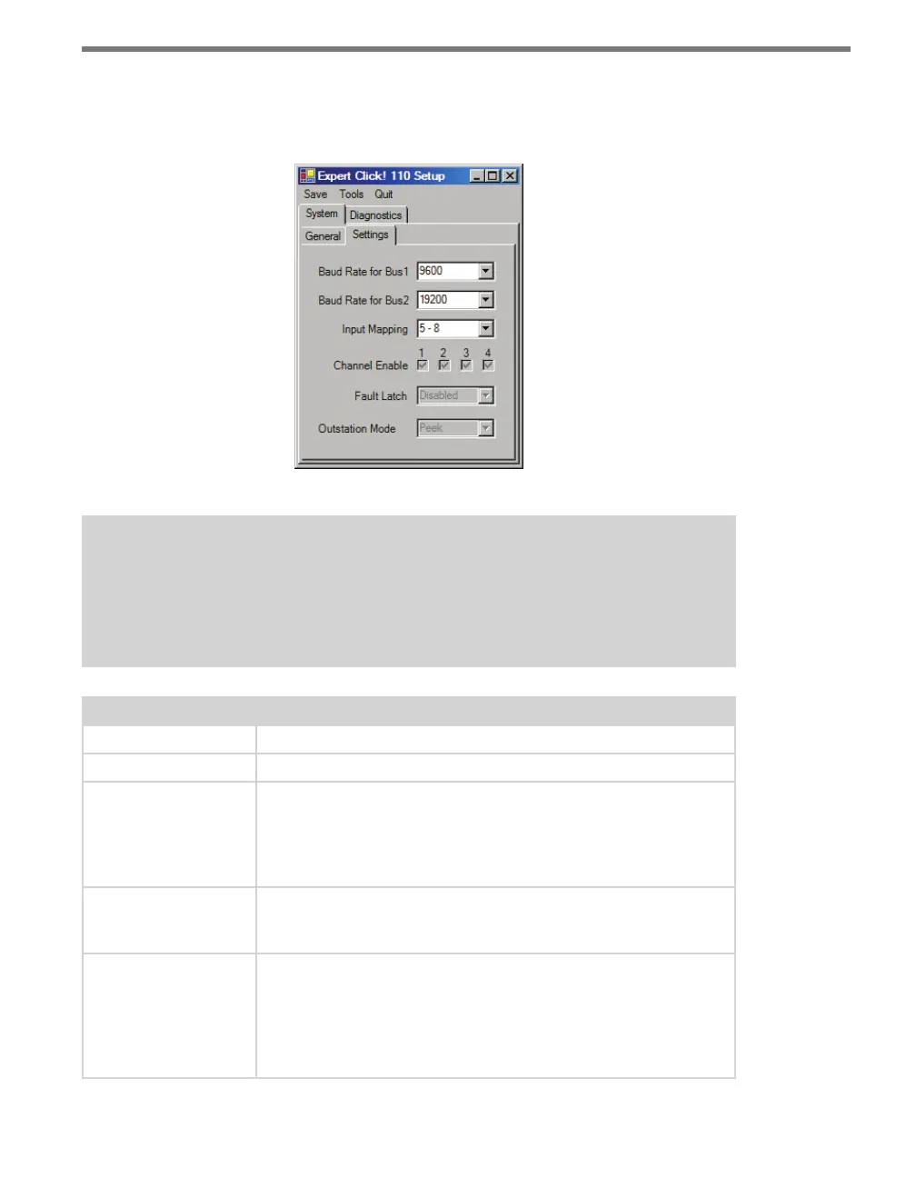 These parameters can also be configured using the DIP switches or the front panel