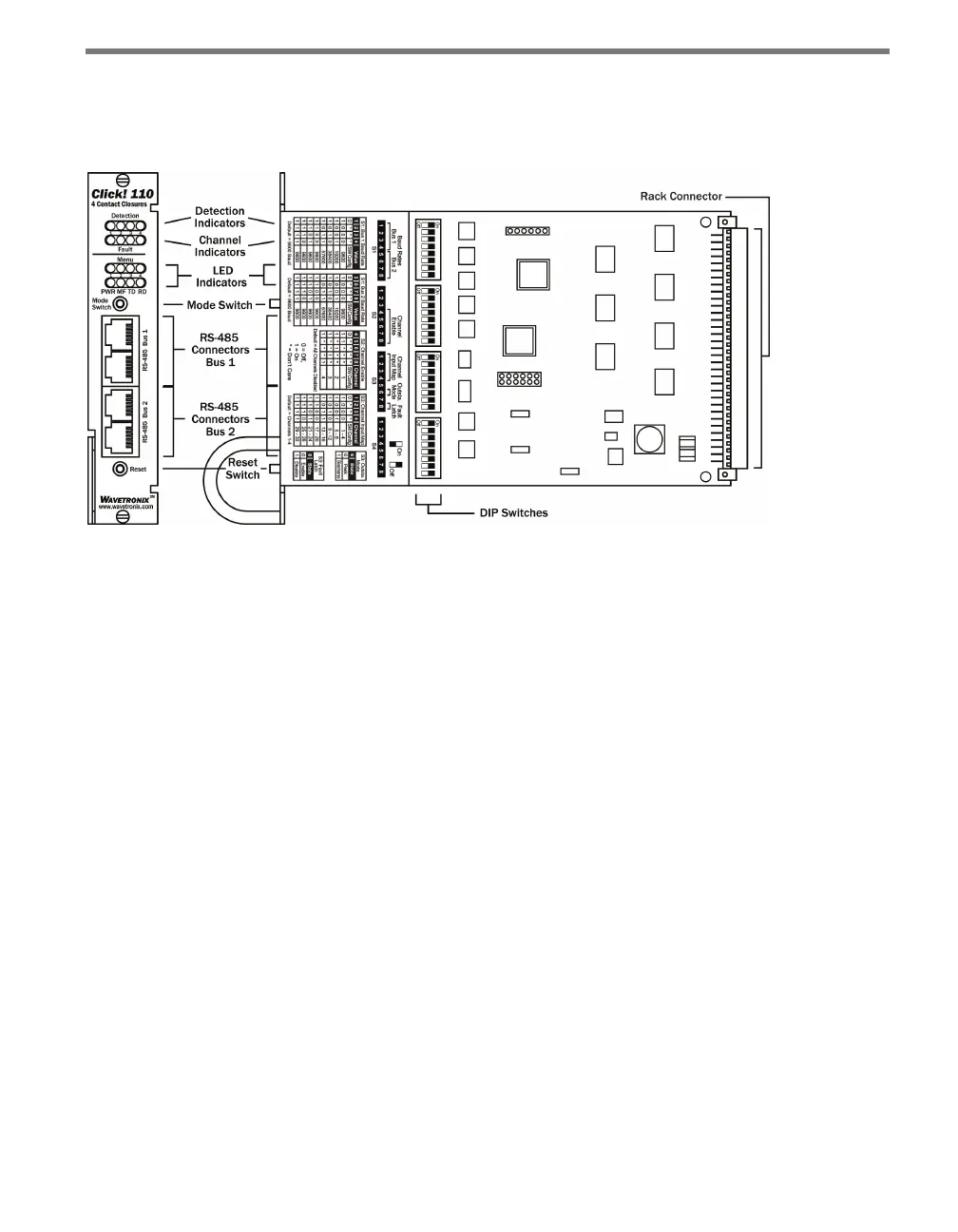 e faceplate of the Click 110 has four banks of LEDs. e top bank is used for detection in-